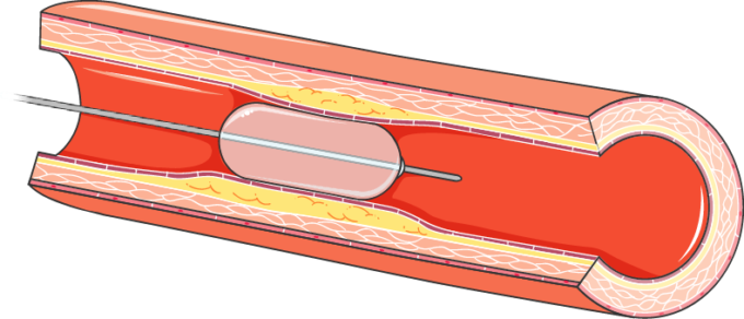Jos sepelvaltimon ahtauma aiheuttaa rajoittavia rintakipuoireita lääkehoidosta huolimatta tai rintakipuoireisto on nopeasti kiristynyt, voidaan varjoainekuvauksen löydöksen perusteella harkita ahtaumakohdan laajentamista suonen sisältä käsin. Tällöin ranne- tai nivusvaltimon kautta viedään sepelsuonen ahtauman sisälle pallokatetri, joka laajentaa kaventumakohdan ja parantaa veren virtausta ahtauman läpi.